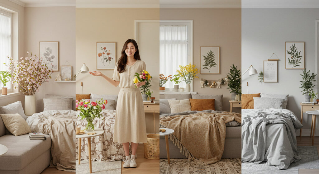 계절이 바뀔 때마다 옷장 정리를 하는 것처럼, 집안 분위기도 한번쯤 확 바꿔보고 싶을 때가 있어요. 그런데 막상 시작하려고 하면 ‘뭘 바꿔야 할까?’, ‘돈이 너무 많이 들지 않을까?’ 걱정부터 들잖아요. 제가 그랬거든요. 그런데요, 사실 거창한 공사나 큰 가구 교체 없이도 우리 집을 새롭게 변화시킬 수 있는 방법이 정말 많아요. 특히 계절에 맞는 컬러와 소재, 그리고 작은 소품들을 활용하면 놀라울 정도로 집 분위기가 달라지는 걸 경험할 수 있답니다. 오늘은 봄부터 겨울까지, 사계절에 맞춰 우리 집을 꾸미는 실용적인 팁들을 하나씩 소개해 드릴게요! 😊